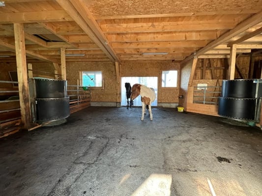 Im Winter bekommen die Pferde 5 Fütterungen pro Tag, u.a. an den automatischen Futterraufen.